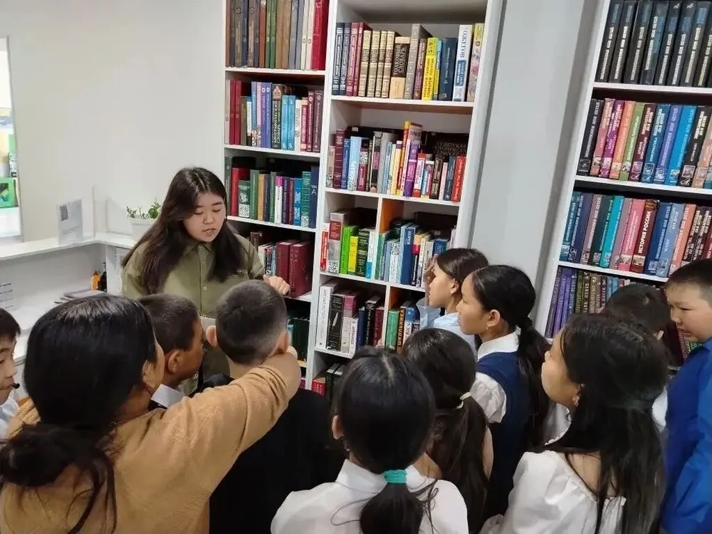 Для ребят прошел увлекательный библиотечный урок, который провела студентка библиотечного отделения Айхаана.